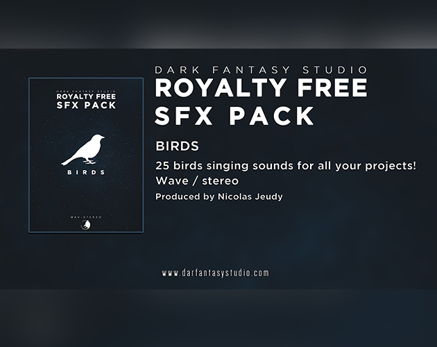 Each bird sound has been professionally recorded and processed to ensure crystal-clear audio quality. Whether you're building an immersive forest scene, creating nature-inspired background ambiance, or adding authentic wildlife sounds to your project, this pack delivers professional-grade audio ready for immediate use. All sounds are royalty-free and can be used in commercial and non-commercial projects without additional licensing fees. Perfect for indie game developers, filmmakers, content creators, and sound designers seeking authentic, high-quality bird audio effects. Dark Fantasy Studio presents curated sound design collections for creators who demand quality. Explore our full catalog of royalty-free music and sound effects at darkfantasystudio.com. Discover advanced sound design tools and royalty-free music libraries at noisealchemy.com for professional-grade audio production. Features:
