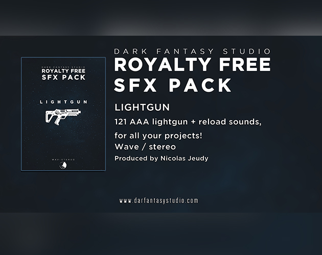 Get 121 professional-grade lightgun sound effects for your game projects, videos, and creative works. This comprehensive SFX pack by Nicolas Jeudy from Dark Fantasy Studio includes shoots, reloads, combined effects, and more.